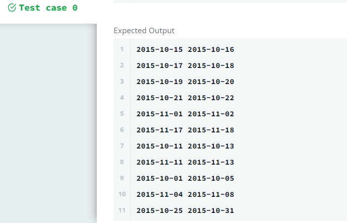 위에 해당되는 Start_Date와 End_Date를 뽑아내고 Start_Date와 End_Date의 차이가 적은 순서부터 출력한다.