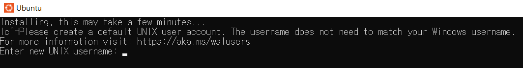 6. Ubuntu를 실행한다. 실행 완료되는데 몇분정도 소요된다.