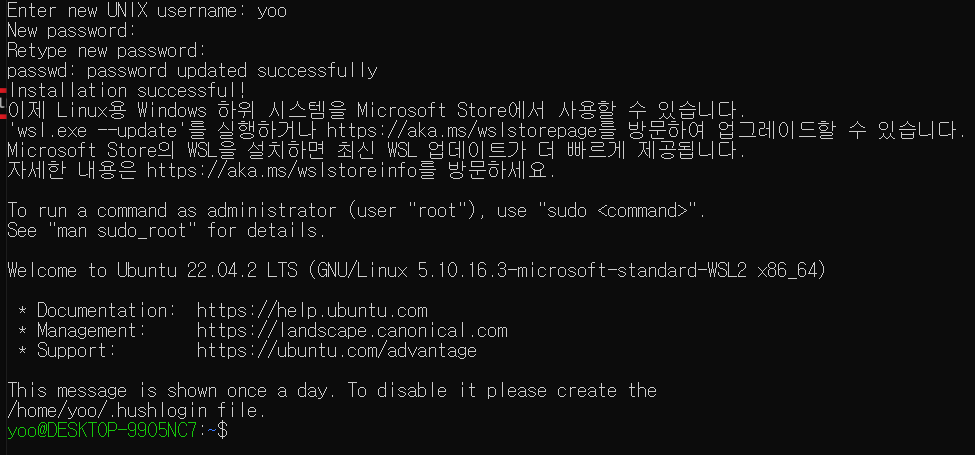 4. 설치가 완료되면 Windows Powershell에서 아래 코드를 실행한다