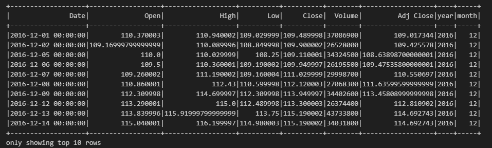 df = spark.read.table("appl_stock").where("year = 2016 and month = 12")