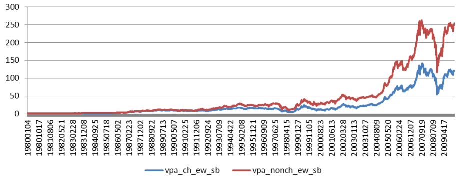 1) 생존/비생존한 기업을 모두 포괄하여 수익률을 조사하였을 경우