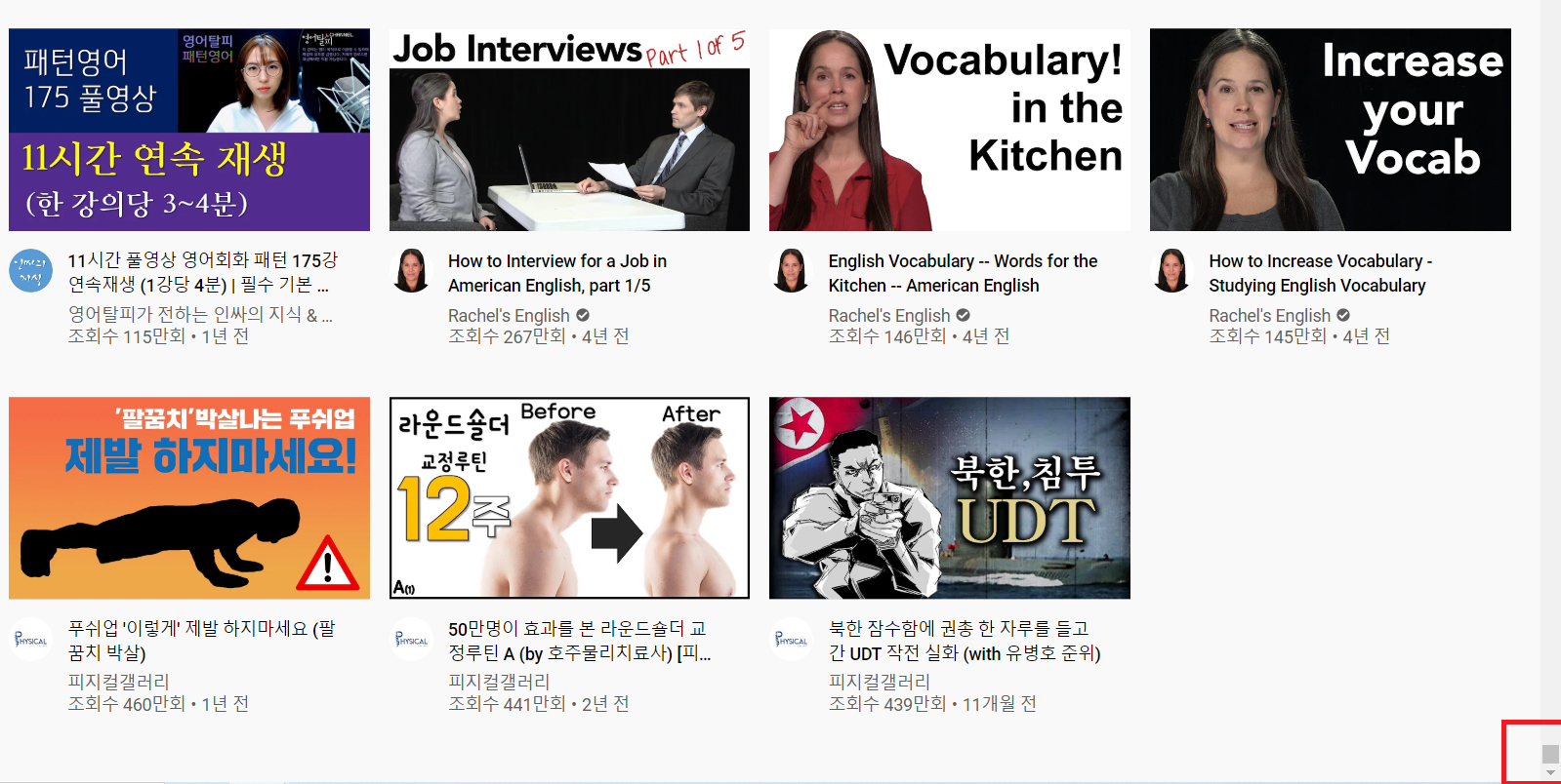 유튜브의 특징은 스크롤바를 끝까지 내리면 밑 부분이 로딩이 된다.