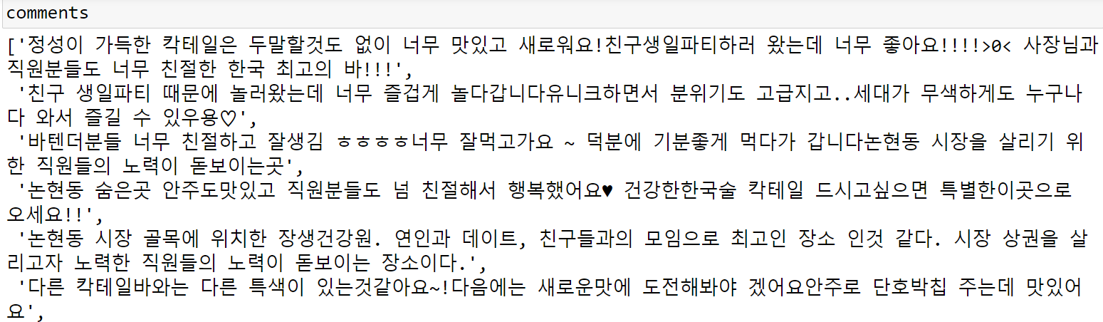 TripAdvisor에서 장생건강원이라는 식당의 댓글을 크롤링해보겠습니다.