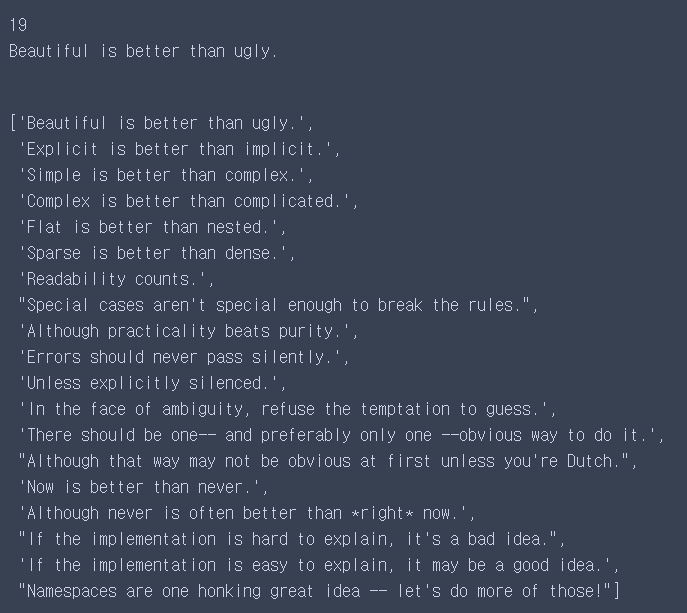 - 반환타입 : 토큰하나 하나를 원소로 하는 list