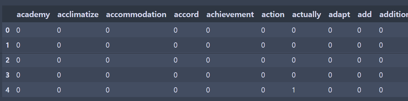 news_tdm_df = pd.DataFrame(tdm_news.toarray(), columns = cv_news.get_feature_names())